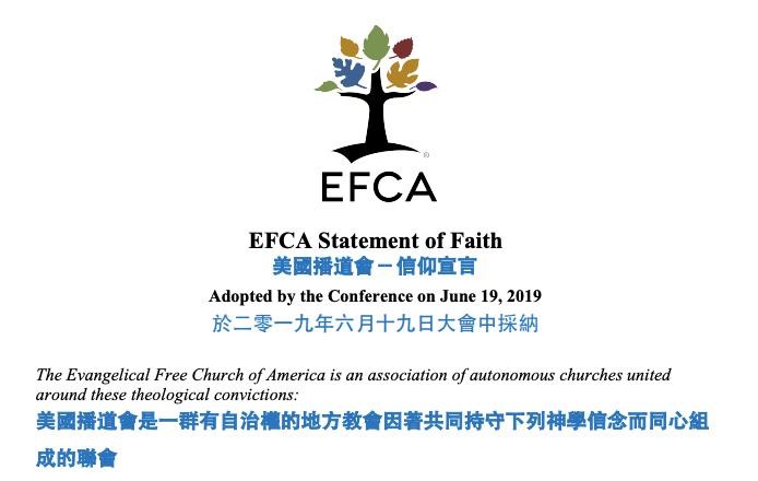 When God called us, Chi Eng and Kar-Shan, to serve Him as the itinerant pastors of the Association of North American Chinese Evangelical Free Churches between 2013 and 2018, we have found that the pastors, the lay leaders, the congregation of most Chinese Evangelical Free Churches did not know well the statement of faith of EFCA and its ethos. The need to understand the statement of faith in Chinese has been crucial.